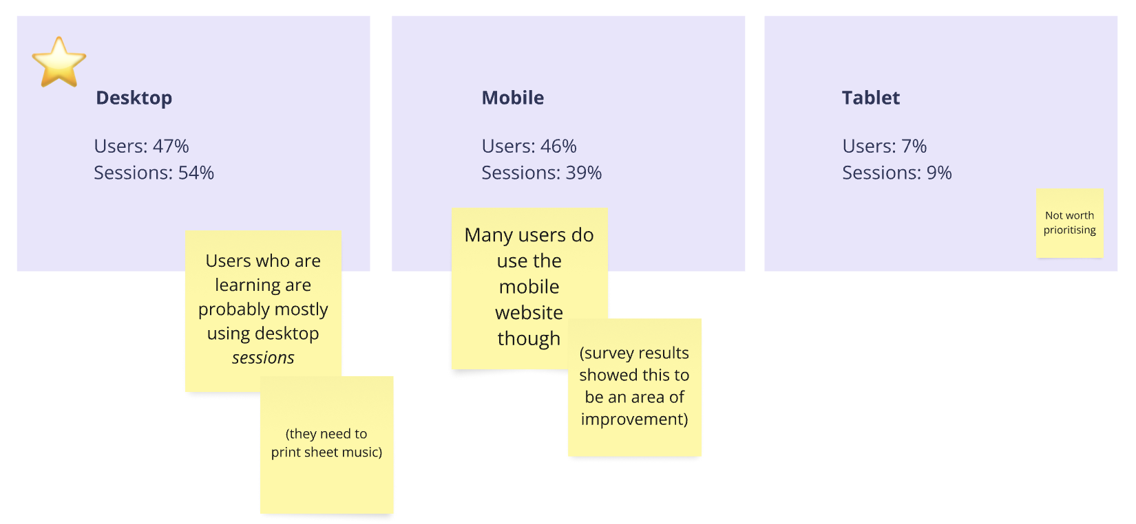 3. Device preference (Sally, like most users, prefers to use a desktop to access Learning the Harp).
